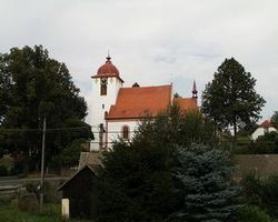 Kostel Narození Panny Marie, postavený jako opevněný gotický kostel na konci 13. století . V té době byl majitelem tvrze Křivsoudova purkrabí Pražského hradu