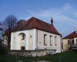 U kostela se nachází zvonice z roku 1351, stejně jako kostel barokně přestavěná v 18.století.