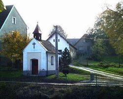 Jednou z osad, patřících k Čechticím, je Černičí. Na fotografii je kaplička na návsi.